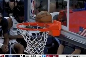 GIF-杜兰特投篮卡到篮脖子上