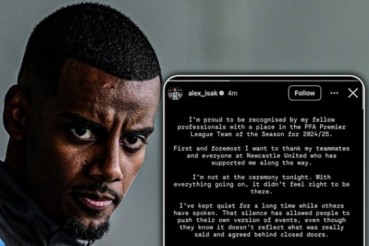 8月19日:伊萨克缺席PFA颁奖礼,通过社媒声明指控纽卡违背承诺,称"分手对双方都是最佳选择"。