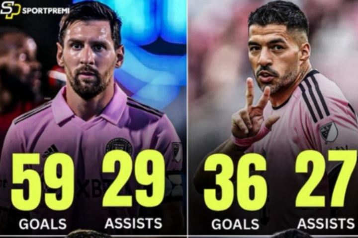 兄弟足球!前巴萨U40四人组在迈阿密数据:梅西59+29,苏牙36+27
