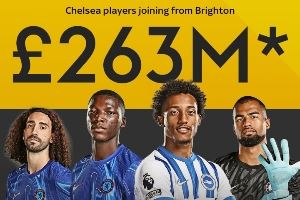 近3年,蓝军已花费2.63亿镑签下布莱顿4将