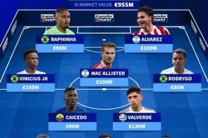 总身价9.55亿欧!南美足联最贵阵:维尼修斯领衔,皇马3人红军2人